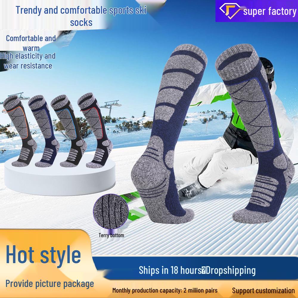 These ski socks are designed for comfort and performance on the slopes. Made from high-quality cotton, they are thick and warm, providing excellent insulation in cold conditions. Their odor-resistant properties help keep feet fresh, while the breathable fabric allows for ample airflow, reducing sweat buildup. The sweat-absorbent feature ensures your feet remain dry during intense activities. With a towel bottom for added cushioning, these mountaineering long socks offer superior comfort and protection, making them ideal for skiing and other outdoor adventures.