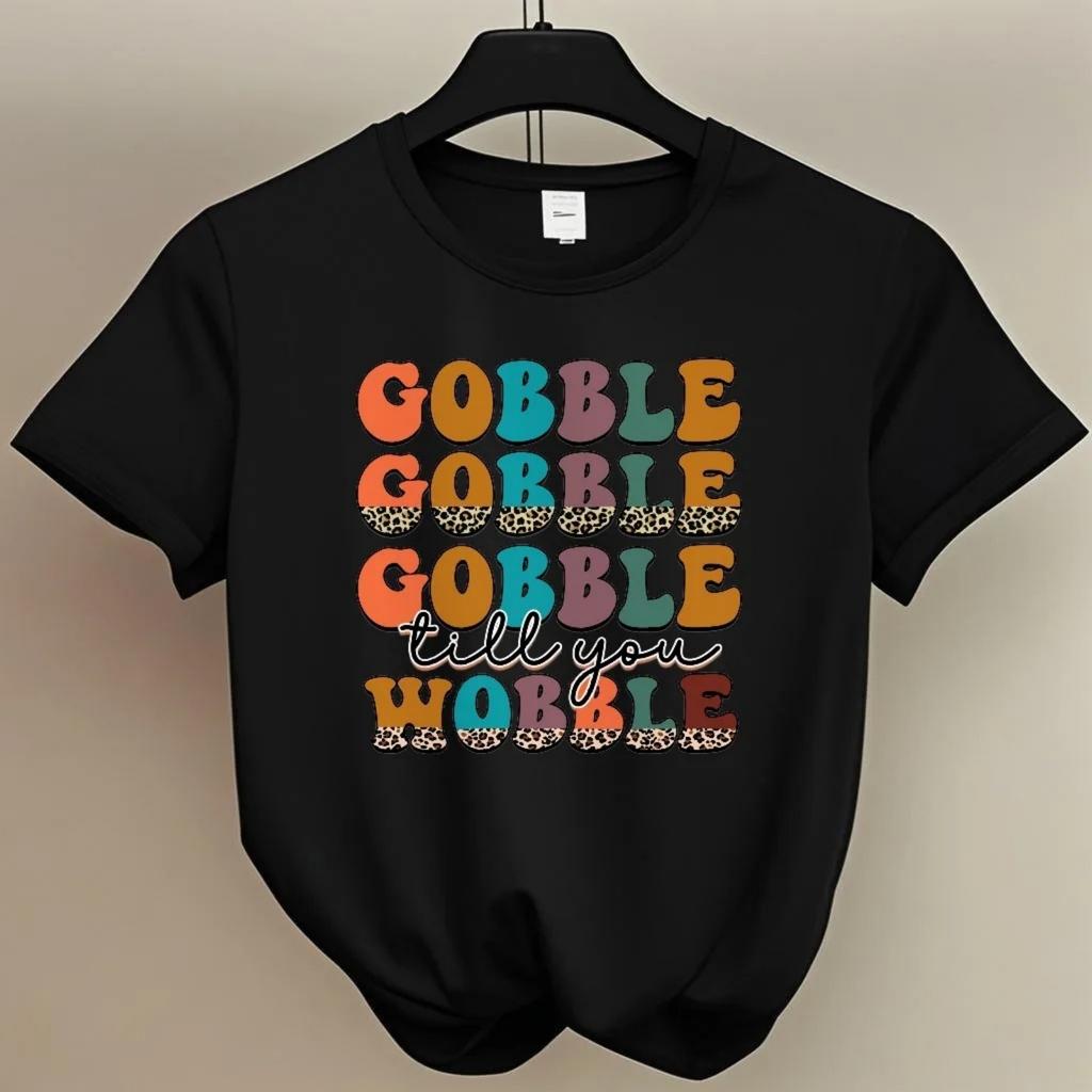 Women’s Short Sleeve T Shirt Gobble Design for Thanksgiving - Related Summer Events Young Women with a Fun Style
