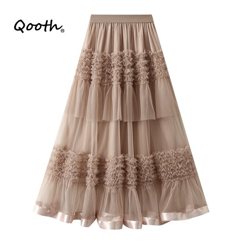 Qooth Tiered Tulle Maxi Skirt Ruffled Layer Cake Skirt Dreamy & Vintage Fairycore QT2825