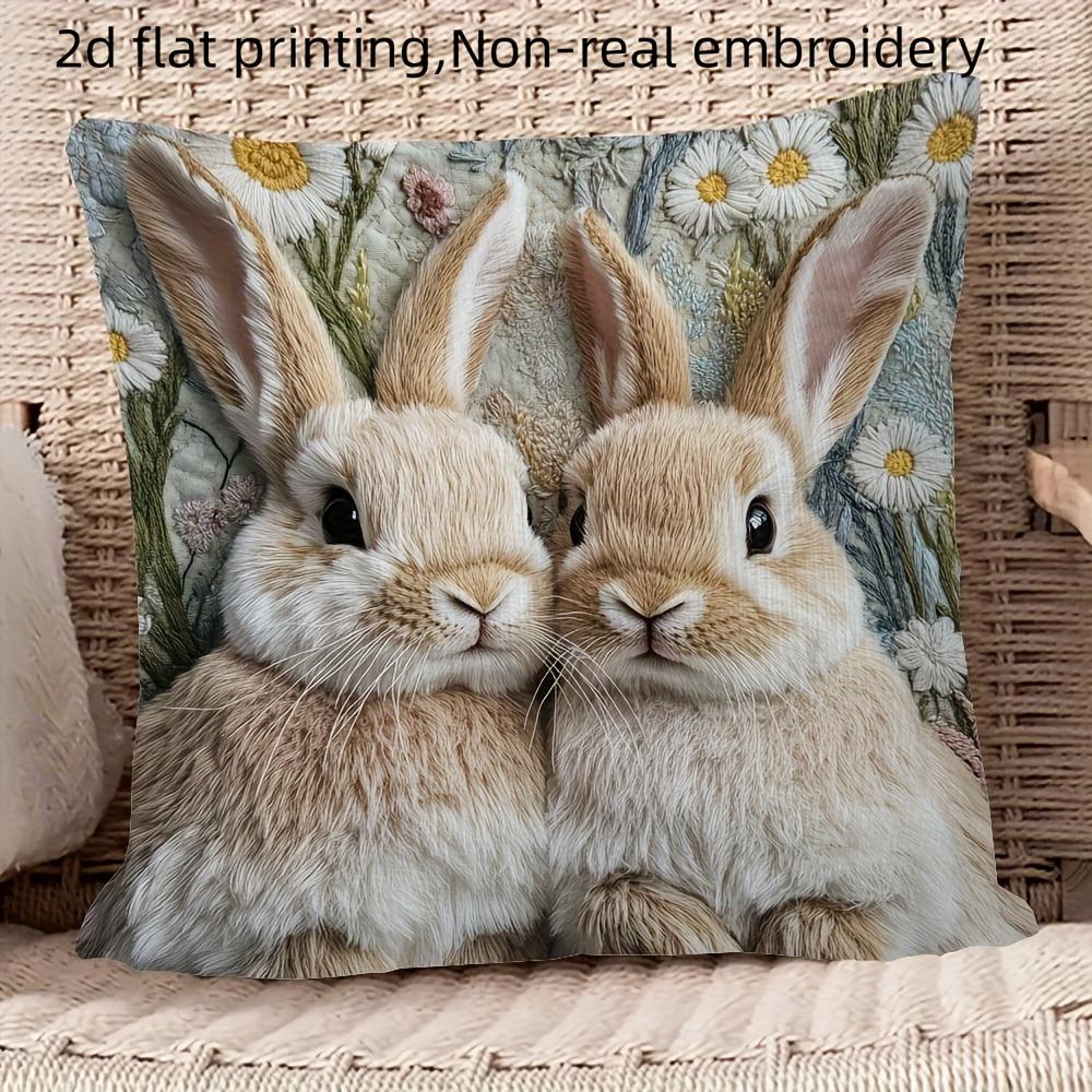 1Pc Pillowcase, Cute Rabbit Depends On Each Other; Warm and Cute Pillow Cover