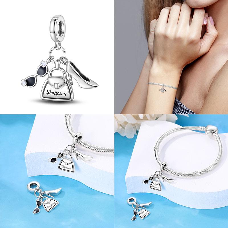 100% Copper Lipstick High Heels Bag Charms Fit Original Bracelet Jewelry Making For Women Gift
