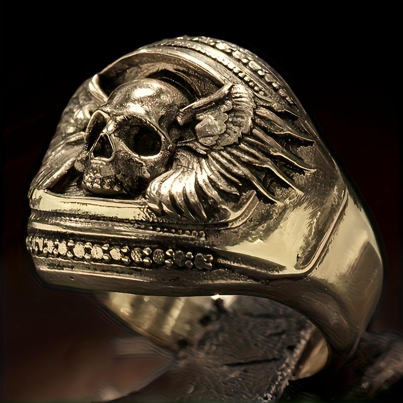 European and American Retro Skull Eagle Wings Men's Ring Trend