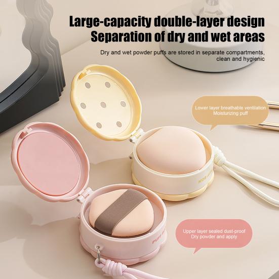 Innovative Double-Tier Wet and Dry Separation: The storage box is intelligently divided into upper and lower compartments to separate dry and wet makeup puffs. This thoughtful design prevents cross-contamination, maintaining cleanliness by keeping your beauty tools clean and ready for use at all times.
