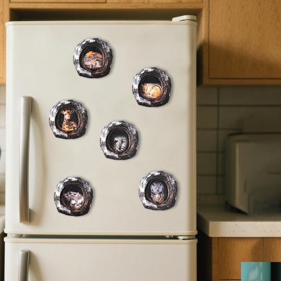 Each magnet showcases vivid, high-definition close-ups of adorable animals like cats, deer, and rabbits, adding a warm and lively touch to any kitchen. Crafted with a unique tree hole texture design, the three-dimensional shape mimics natural wood grain and distressed edges for an authentic forest-inspired look.