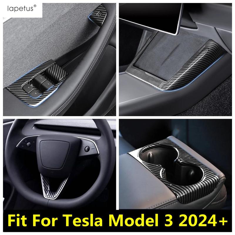 Steering Wheel / Window Lift / Rear Water Cup Panel / Central Storage Box Strip Cover Trim Accessories For Tesla Model 3 2024