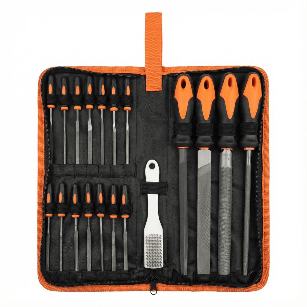 Heavy-Duty Carbon Steel File Kits | Flat, Triangular, Semi-Circular, Large Round, and Precision Needle Files with Wire Brushes