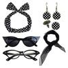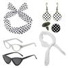 1950's Womens Costume Accessories 50s Scarf Cats Eye Glasses Bandana Tie Polkas Dot Headband Drop Earrings for Halloween
