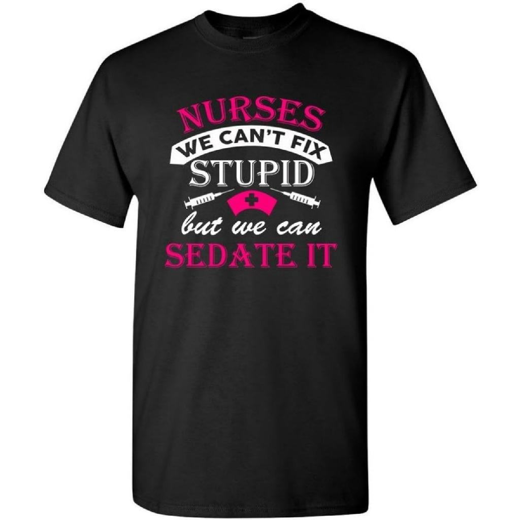 Nurses We Can't Fix Stupid But We Can Sedate It Funny Humor DT Adult T-Shirt Tee