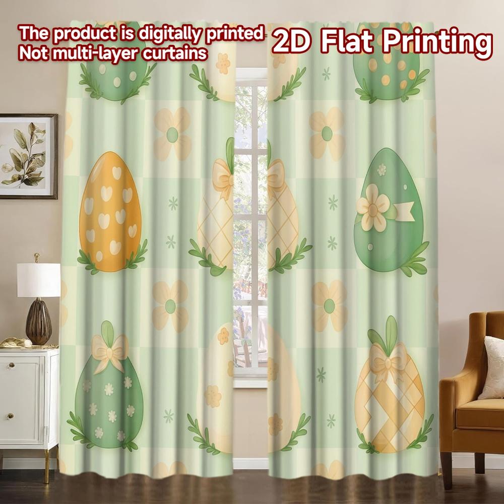 2D Flat Printing 2pcs New Year Popular Curtains Easter Eggs and Flowers() Versatile Durable Polyester Without Electricity