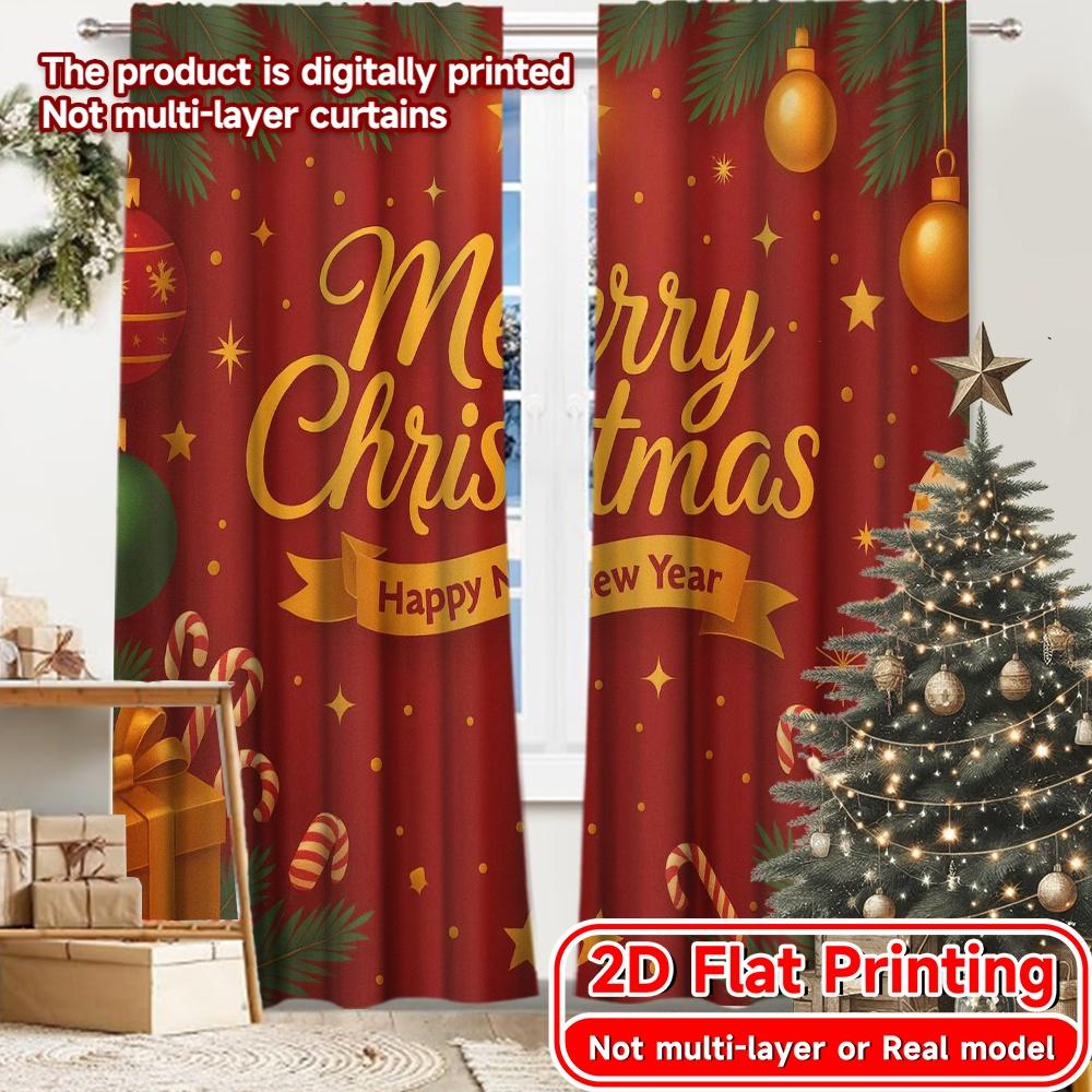 2D Flat Printing 2pcs Festive Cheer Modern Contemporary Curtains Versatile Polyester Curtains Room Decor Decorative for Living