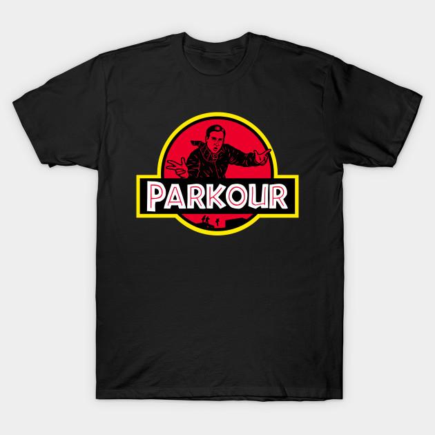 Men Black Print T-shirt Parkour! No-Cut Transfer Paper Print Cotton Tshirt