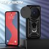 KEYSION Shockproof Armor Case for VIVO X300 Pro 5G Silicone+PC Slide Camera Lens Protection Ring Stand Phone Cover for VIVO X300