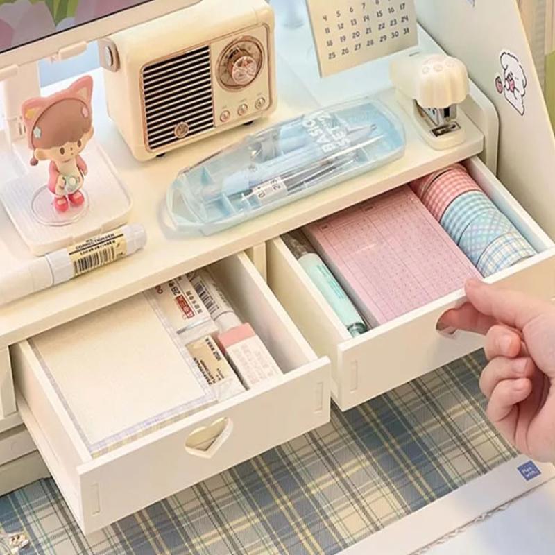 Desktop Added Shelf with Drawers Computer Monitor Stand Office Desk Storage Rack Dormitory Laptop Holder Stationery Organizer