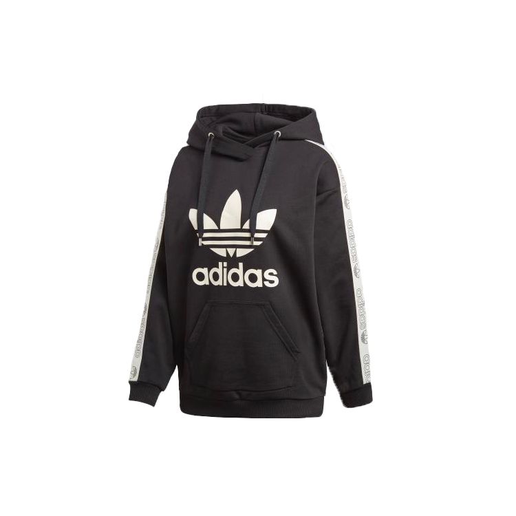 Adidas Originals Trefoil Side Logo American Vintage Patchwork Sports Hoodie Women Hoodies Black DU4427