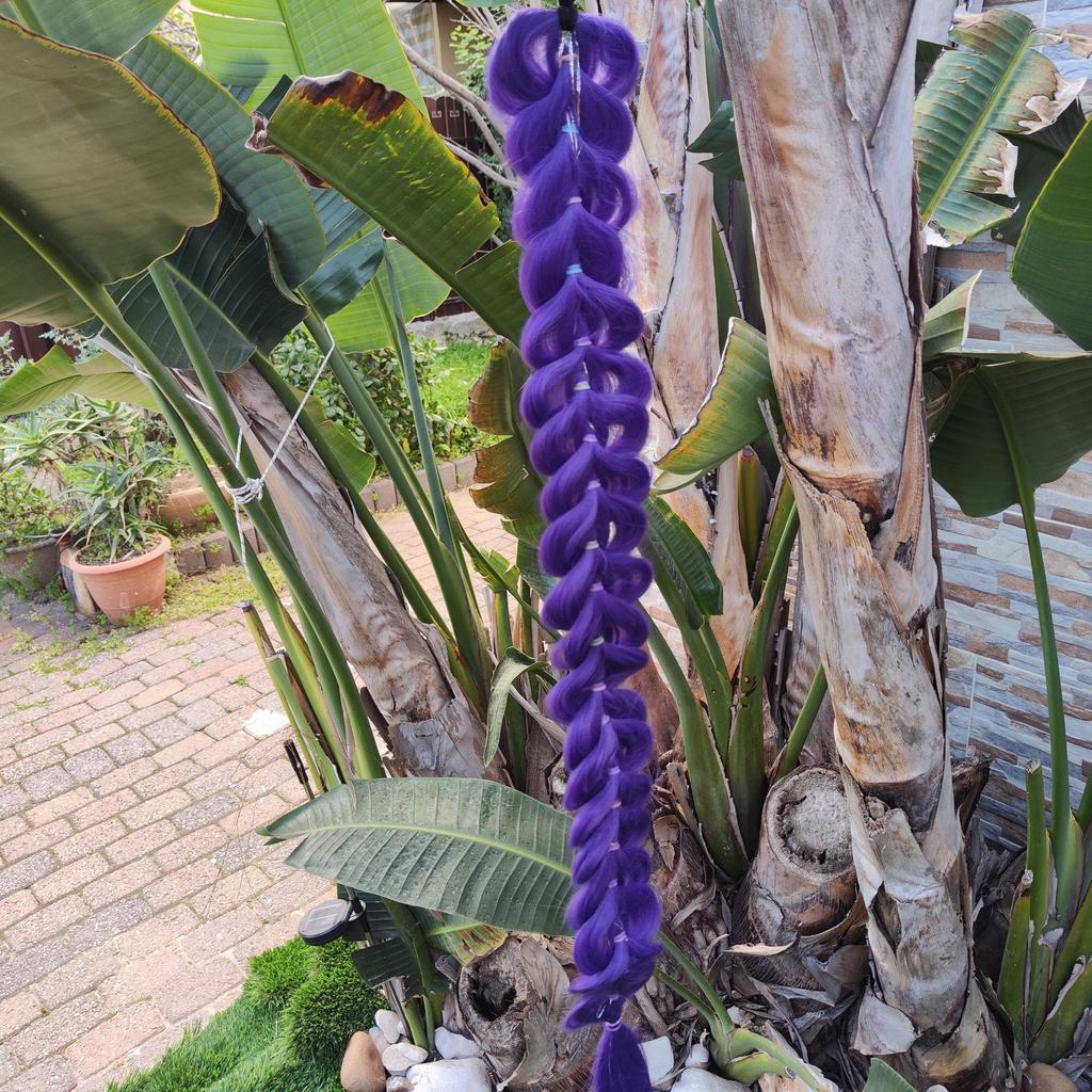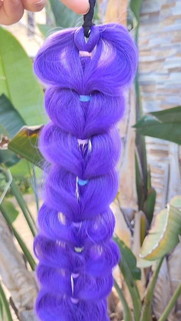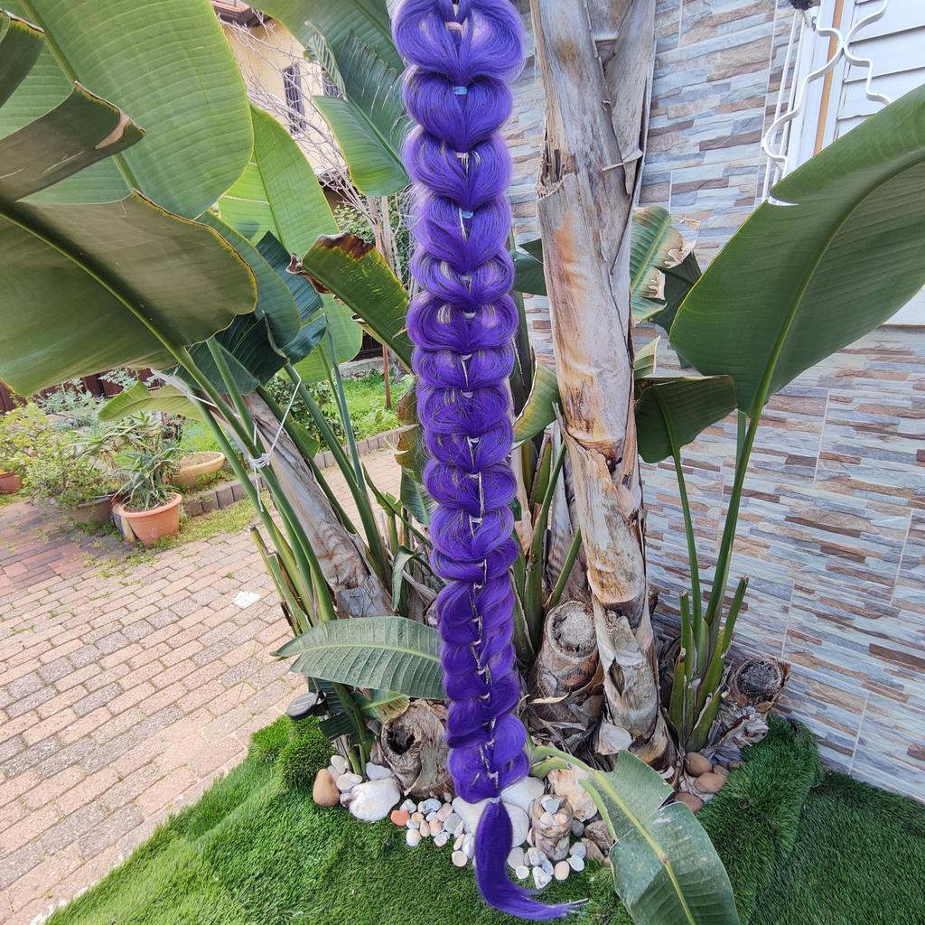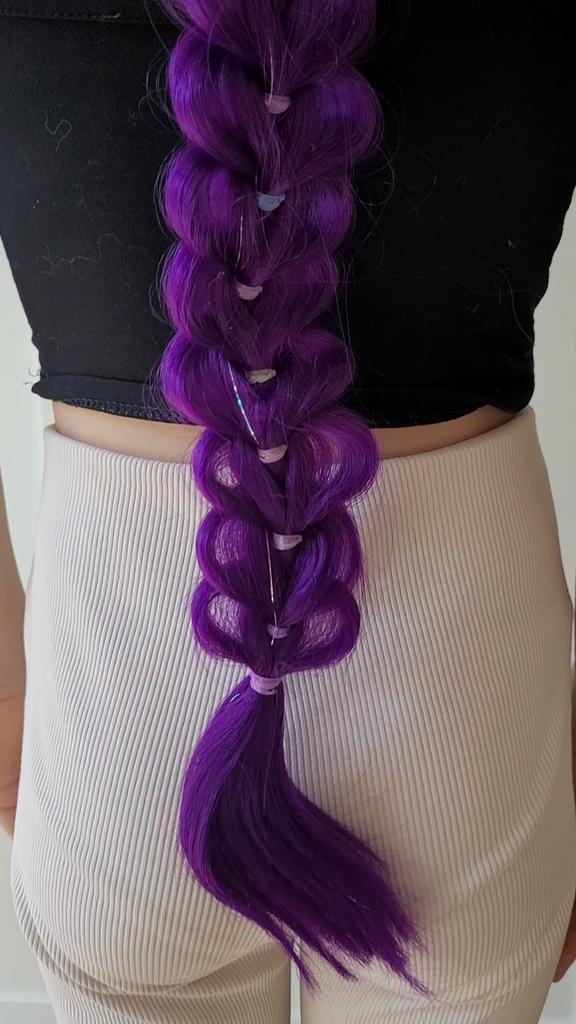 The 32-inch braided purple hair extension is a particularly impressive and colorful addition, adding style and sparkle to any look. The shimmering hair creates a unique and eye-catching effect, perfect for children's parties, birthdays, costume events, or any occasion where you want a magical and happy touch.. What I really loved was the impressive length and the neat braiding, which give a rich and full look without the need for additional styling. The installation is simple and convenient, and it can be easily combined with natural hair to create a particularly dramatic and enjoyable look.. This is a colorful, eye-catching, and cheerful hair extension that provides a perfect costume experience and makes every girl feel like a real star ✨💜🎉