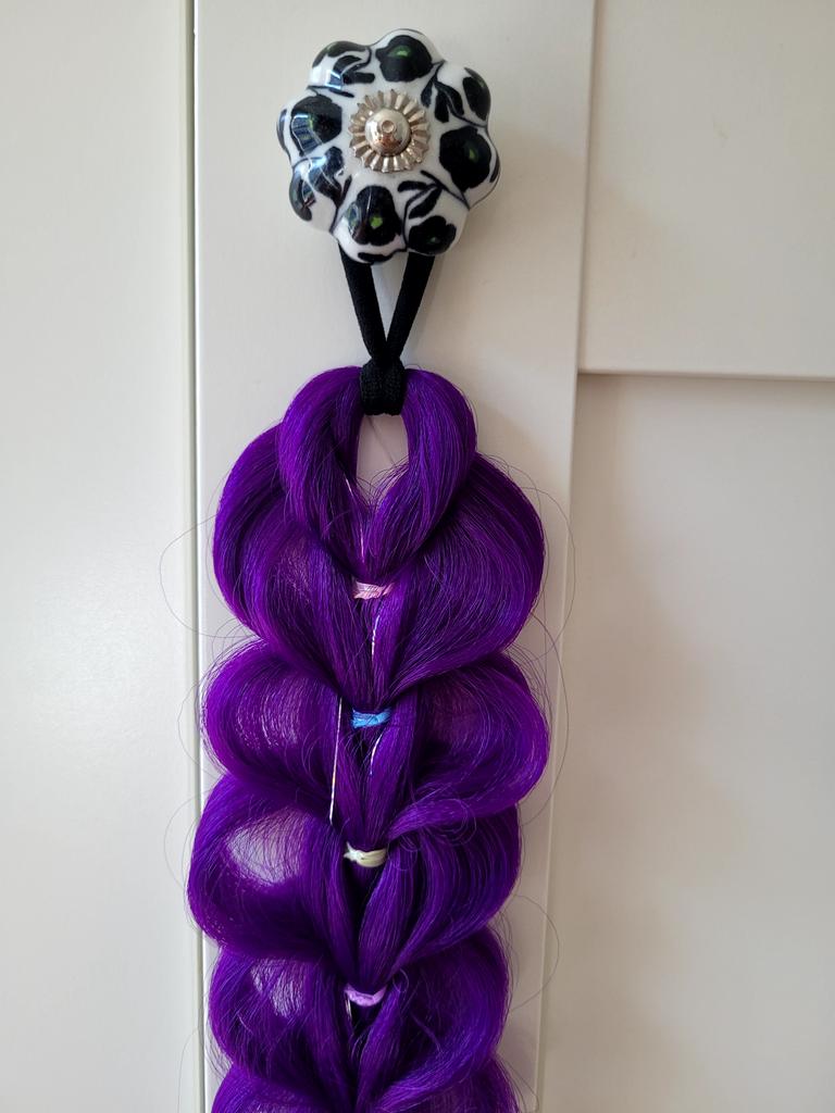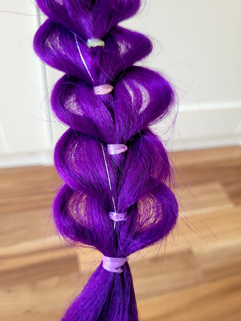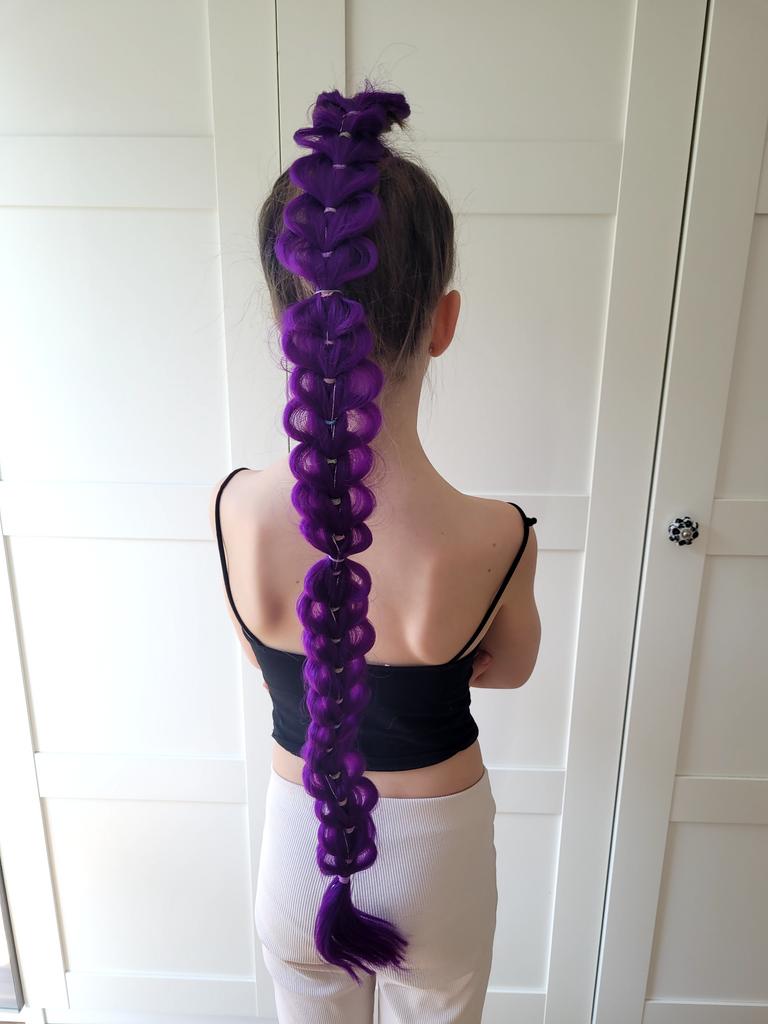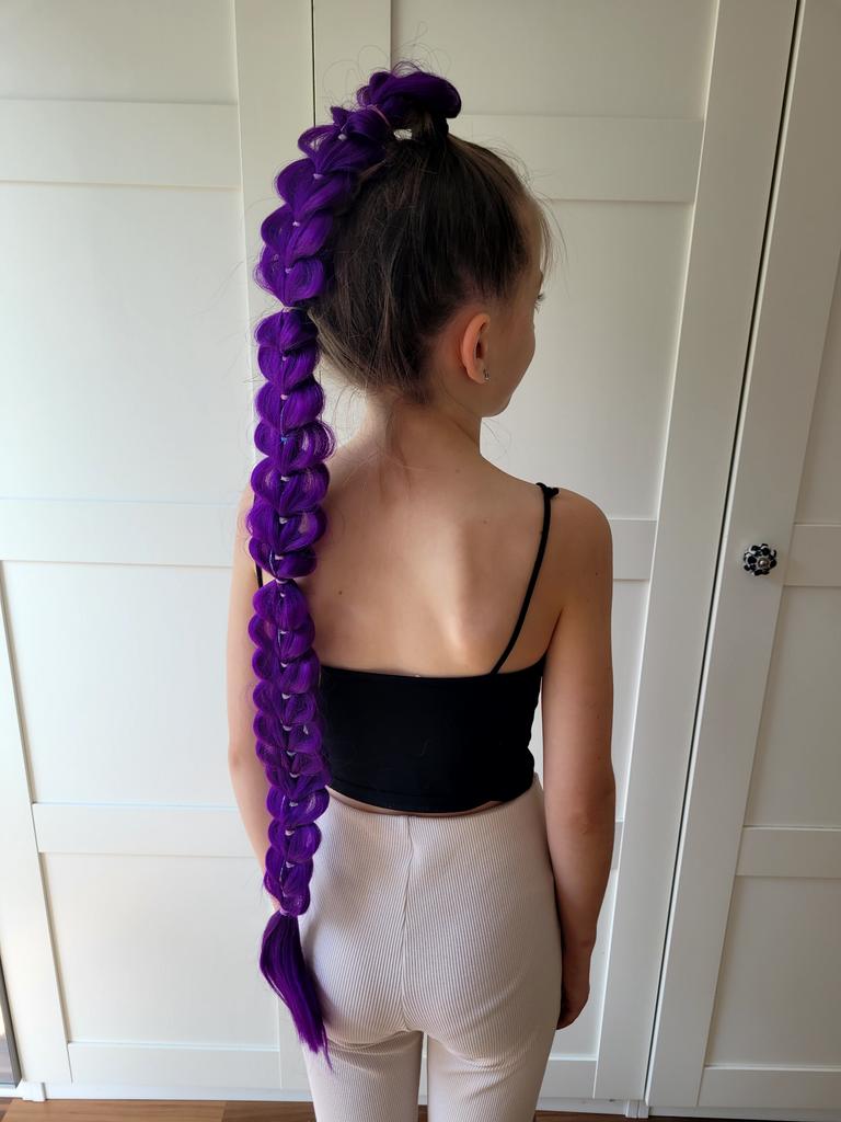The 32-inch braided purple hair extension is a particularly impressive and colorful addition, adding style and sparkle to any look. The shimmering hair creates a unique and eye-catching effect, perfect for children's parties, birthdays, costume events, or any occasion where you want a magical and happy touch.. What I really loved was the impressive length and the neat braiding, which give a rich and full look without the need for additional styling. The installation is simple and convenient, and it can be easily combined with natural hair to create a particularly dramatic and enjoyable look.. This is a colorful, eye-catching, and cheerful hair extension that provides a perfect costume experience and makes every girl feel like a real star ✨💜🎉