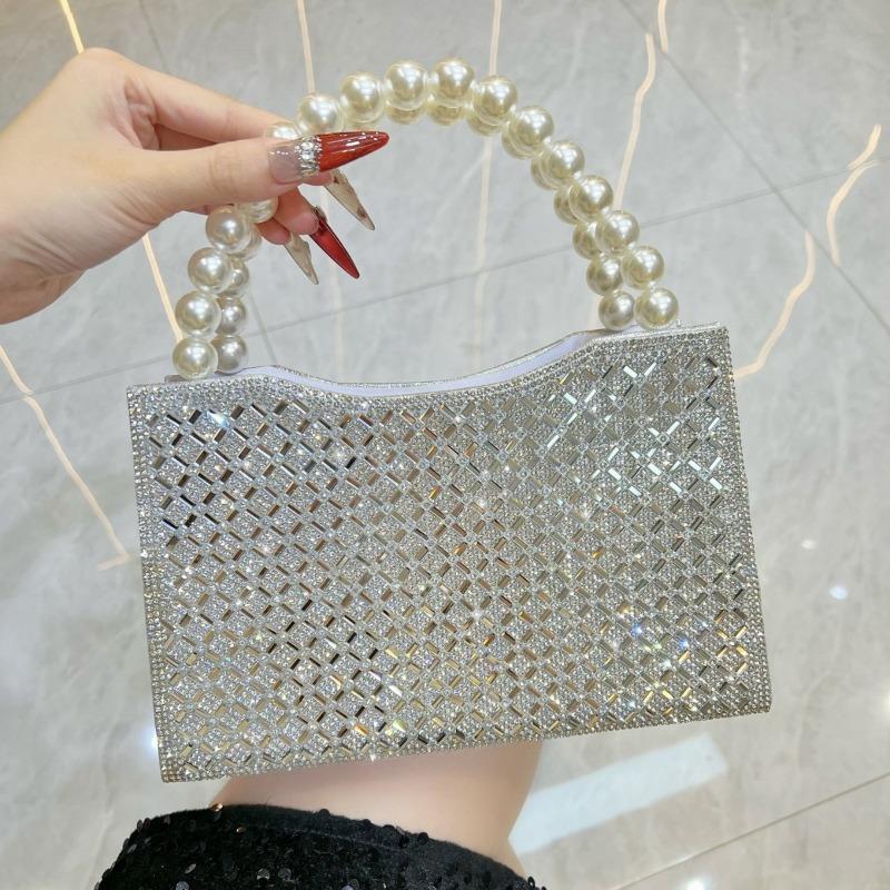Pearl Handbag - Fashionable Evening Bag - Chain Shoulder Bag - Shiny Crystal Crossbody Bag