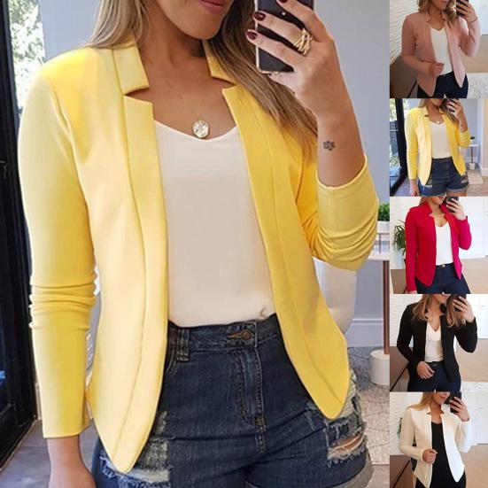 Fashion Solid Color No Button Blazer Women Long Sleeve Slim Fit Suit Jacket?Coat