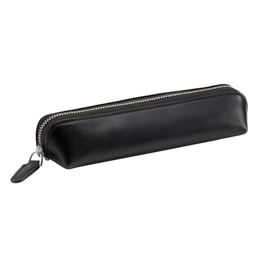 MILAGRO Ethiopian Sheepskin Pencil Case (Stylish Leather Pencil Case for Adults, Simple Design, Large Capacity) ST-1581 (Black)