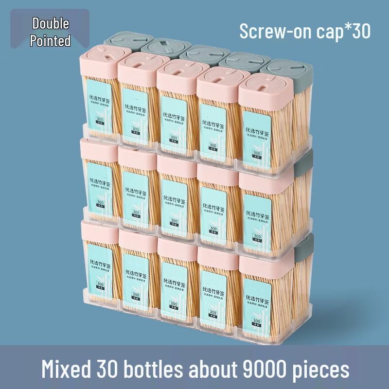 Premium Double-Ended Bamboo Toothpicks, 30 Bottles