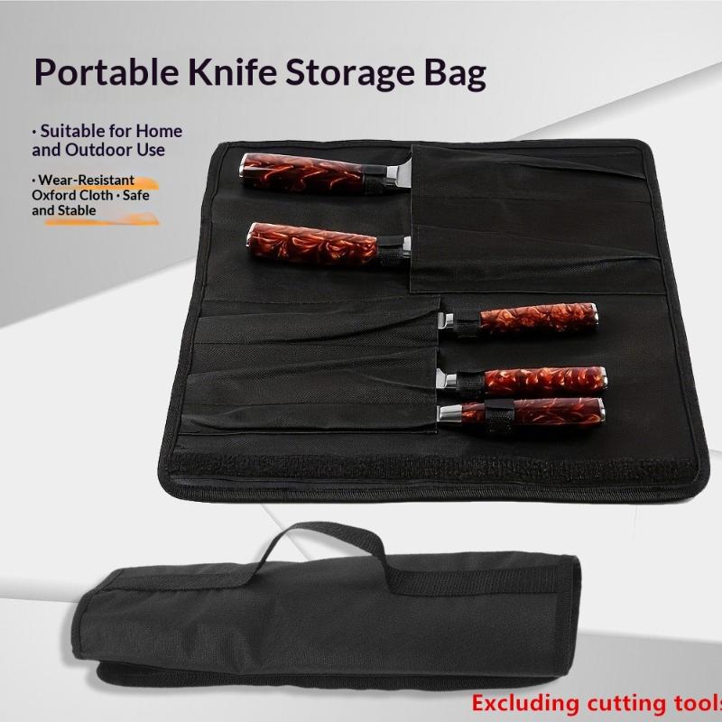 Black Chef Knife Roll Bag 5 Pockets Carry Case Portable Oxford Kitchen Cooking Knives Storage Bags Durable Knife Carrying Punch