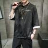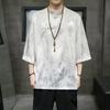 2026 Summer Men Thin Ice Silk Shirt Men Breathable Dragon Pattern Jacquard Shirt Male Stand Collar Button Seven-Half Sleeve T-Shirt Men Pullover