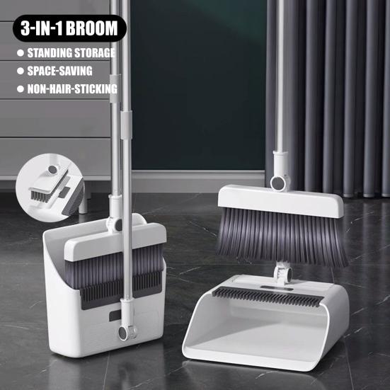 This versatile 3-in-1 cleaning tool set includes a broom, dustpan, and heavy-duty push broom, designed to tackle both indoor and outdoor cleaning tasks with ease. The self-cleaning dustpan features built-in comb teeth that effortlessly remove tangled debris and bristles from the broom, keeping your hands clean.