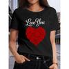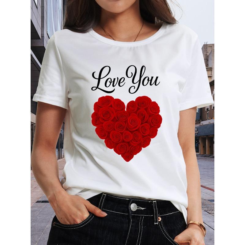 European Size Women'S Love You Rose Heart Print T-Shirt - Soft Breathable Fabric,Casual Round Neck Short Sleeve Top, Spring Summer Fall Casual Attire
