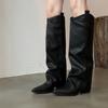 Spice Girl Temperament But Knee Pointe Skinny Thick Legs Knight Boots Women's Retro Thick Heel Pleated Pants Boots