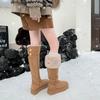 Gray Knee-length Snow Boots for Women, Winter Two Wear Fluffy Plush Thermal Cotton Shoes, Platform Boots