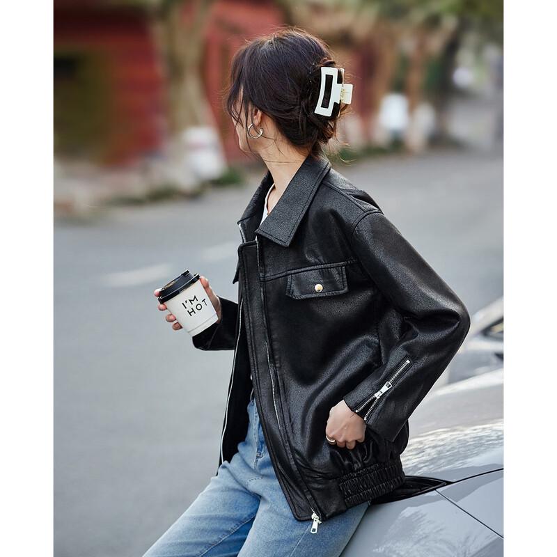 TERRE BLEUE Women's Short PU Leather Biker Jacket