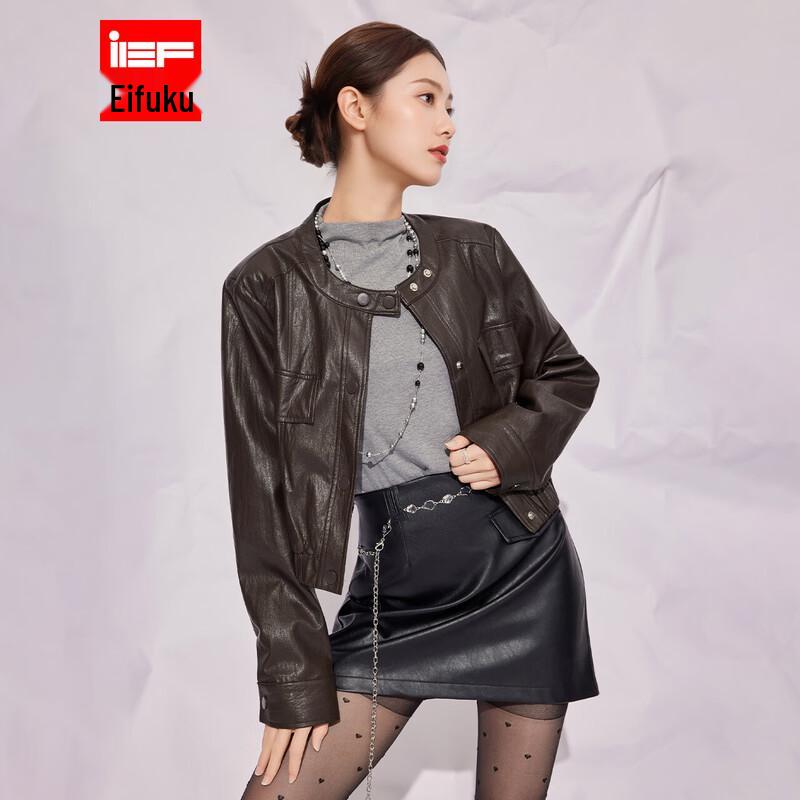 IEF 2025 Fall Shiny Faux Leather Biker Jacket
