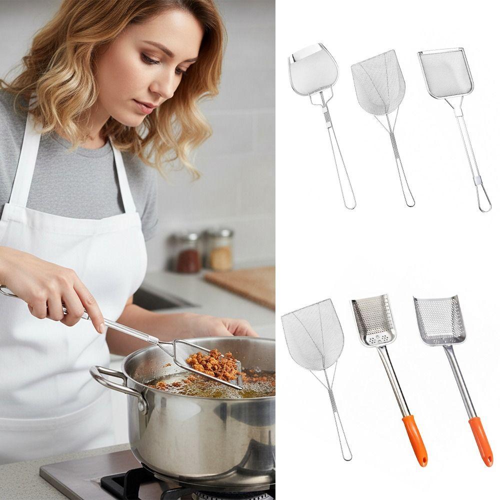 Durable 304 Stainless Steel Filter Spatula Coarse Mesh Premium Fine Mesh Filter Heat Resistant Fine Mesh Filter Spoon Tool