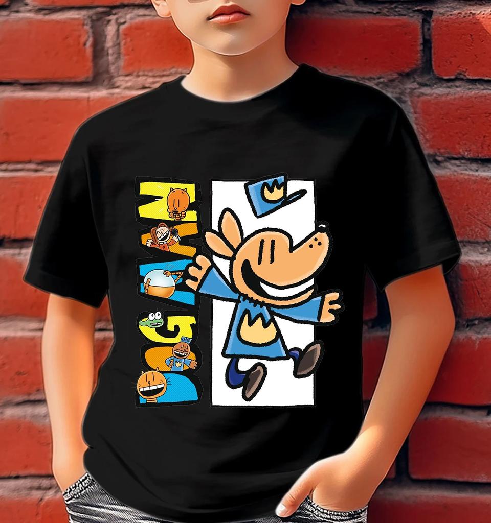 Fashion Dog Man Cartoon Summer Tees for Girls Boys Cute Comfortable Children Clothing Popular Leisure Style Kids O-Neck Tshirt