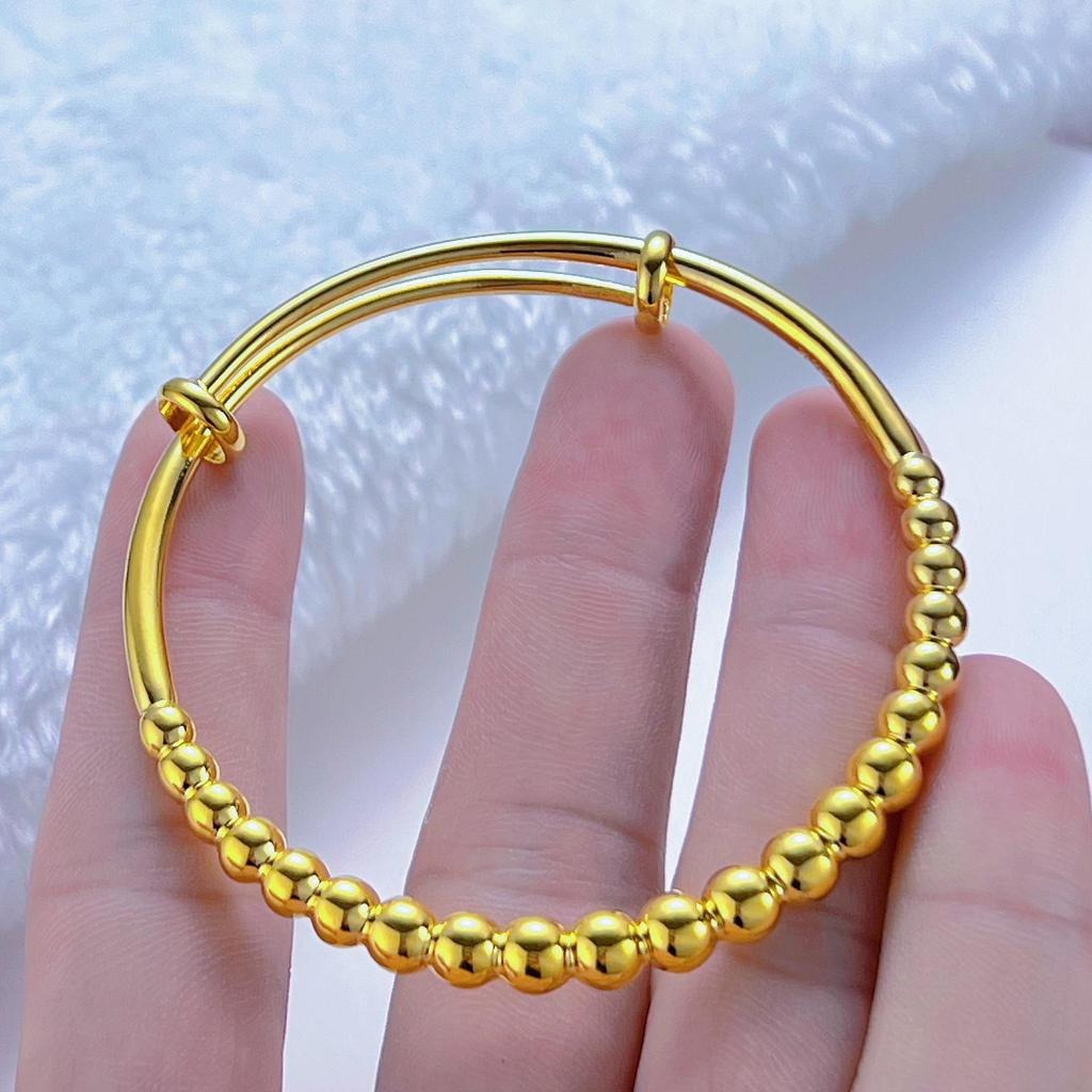 Women's Gold-Plated Vietnam Sand Bead Bracelet - Simple Fashion Push-Pull Bangle