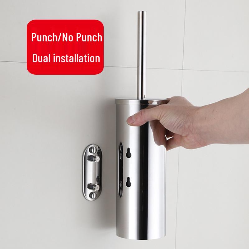 Stainless Steel Wall-Mounted Toilet Brush Set, Punch-Free & Odor-Proof.