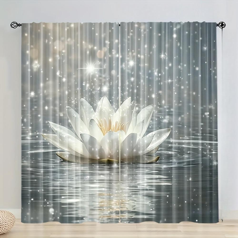 2 Pcs Elegant White Lotus Curtains – Floral Pattern Rod Pocket Design for Living Room Bedroom Bathroom Kitchen