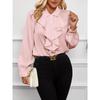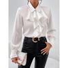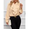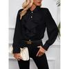 HNXC Women's Fashion Casual Solid Color Print Long Sleeve POLO Neck Blouses & Shirts
