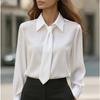 HNXC Women's Fashion Casual Solid Color Print Long Sleeve POLO Neck Blouses & Shirts