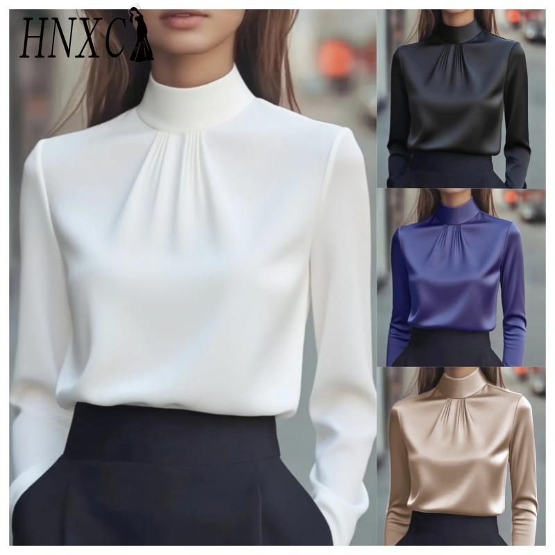 HNXC U Women's Fashion Casual Solid Color Print Long Sleeve Blouses & Shirts