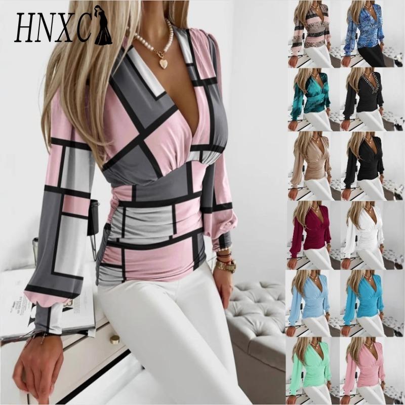 HNXC Women's Fashion Casual Long Sleeve V Neck Blouses & Shirts