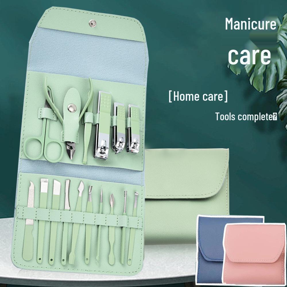 16-Piece Green Manicure Nail Art Set with Nail Clippers for Home Use