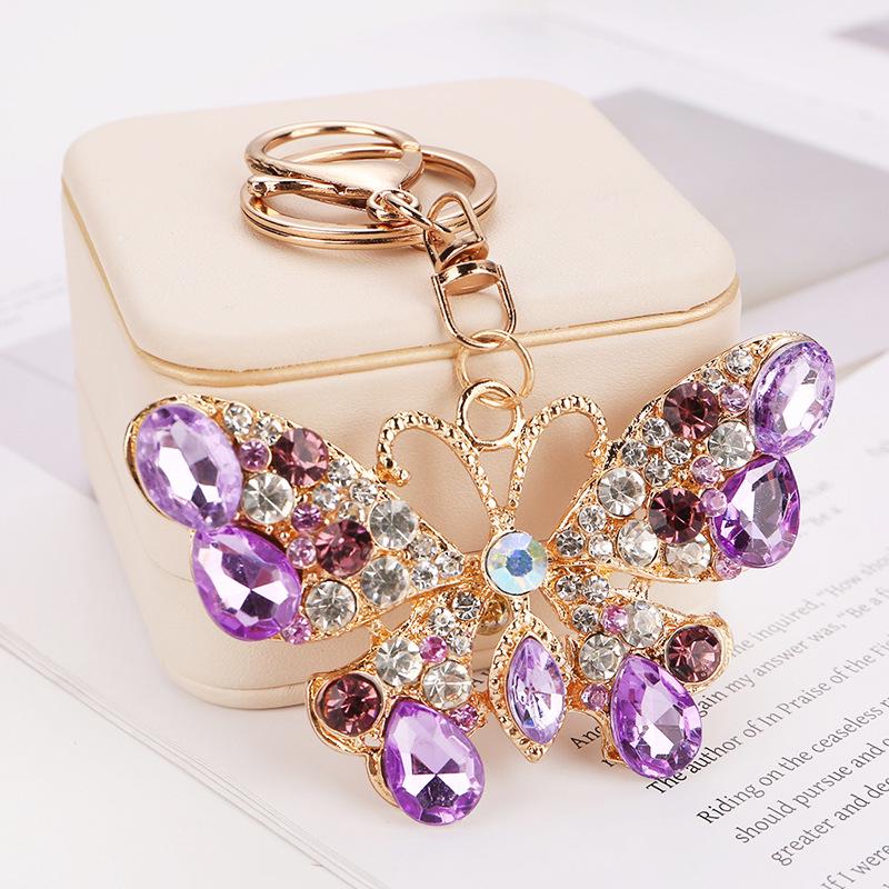 European & American Creative Rhinestone Butterfly Keychain: Unique Metal Moth Insect Charm for Backpack