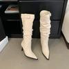 Big Boots, Fashionable Pointed Piled Boots, Pleated Thin High Heels, High Boots, Thin Boots, But Knee Boots