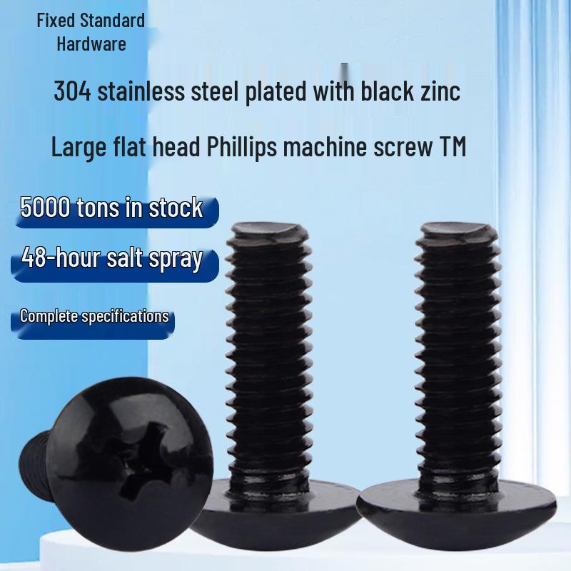 Black Zinc Plated 304 Stainless Steel Phillips Umbrella Head Screws M3-M5