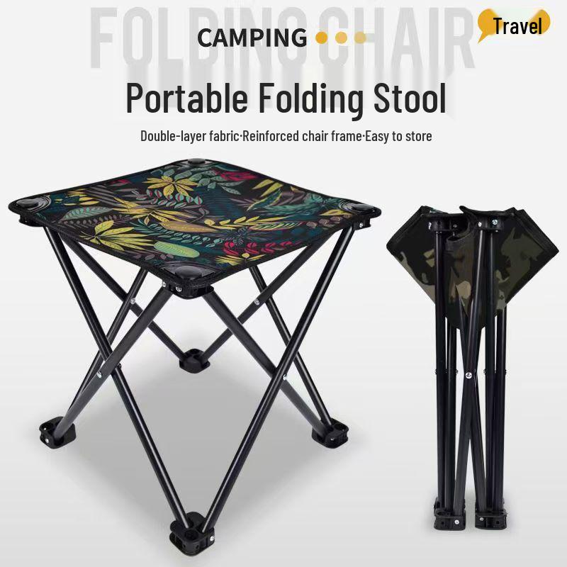 Large Folding Stool with Side Pocket - Extra Height, Portable for Outdoor Use