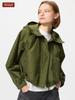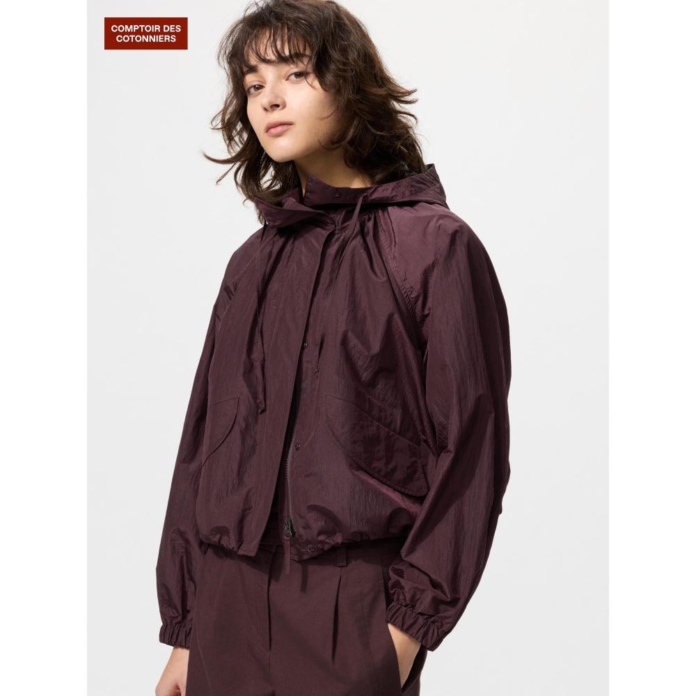 The UNIQLO Japan Utility Short Hoodie is a women's jacket that stands out with its chic design and comfortable fit. Made from high-quality materials that emphasize environmental considerations, it offers a soft color palette and versatile styling. This garment serves as a lightweight outer layer that complements various styles.