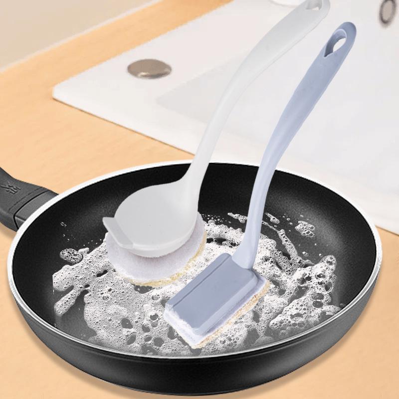 Non-Scratch Loofah Pot Brush with Long Handle - Keeps Hands Clean for Effective Kitchen Cleaning & Degreasing