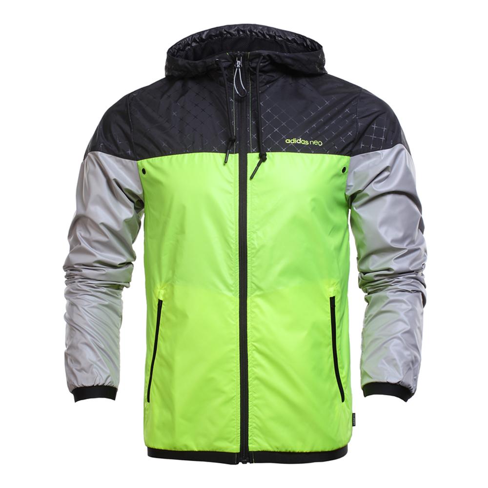 Adidas Neo Lifestyle Casual Series Hooded Zipper Comfortable Long Sleeve Jacket Men Jacket Fluorescent-Green Black Silver AY6501
