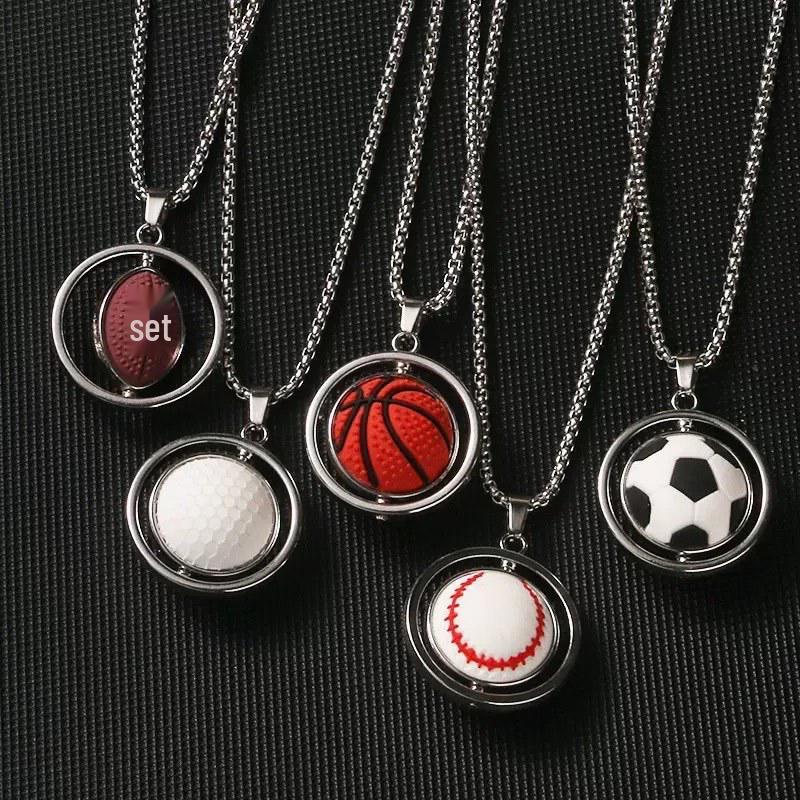 Rotatable Mini Sports Ball Pendant Necklace - Basketball, Football, Golf, Rugby, Baseball - Hip Hop Chain.